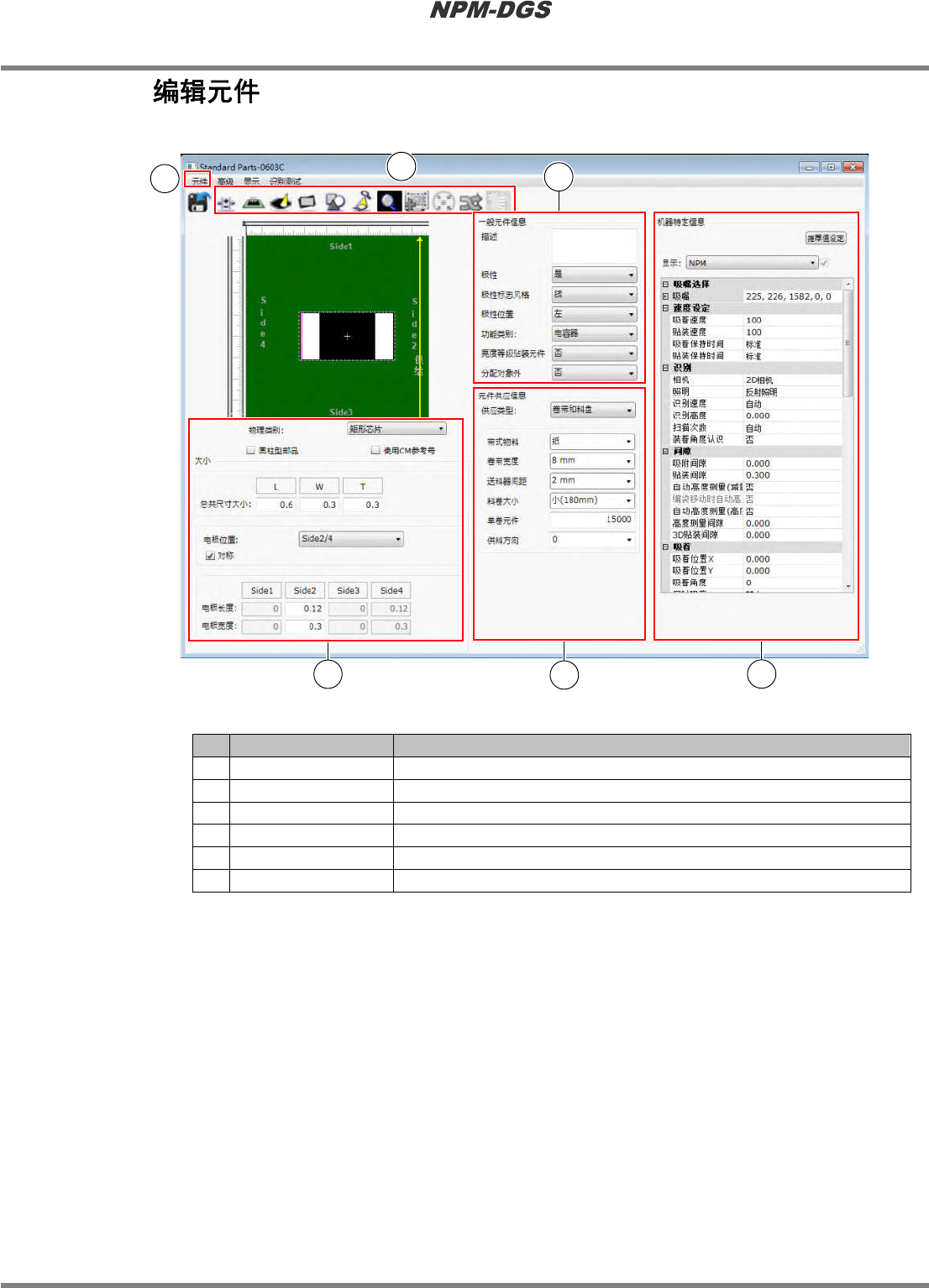 在编辑元件画面上设定元件的形状、供应形态、机器特定信息。