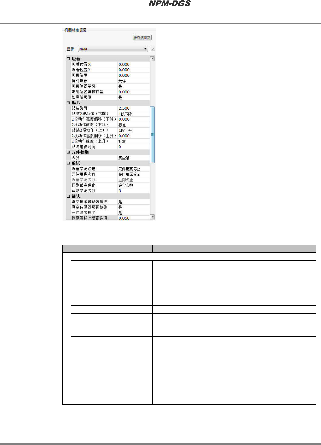 参数进行设定,即可对贴装时施加给元