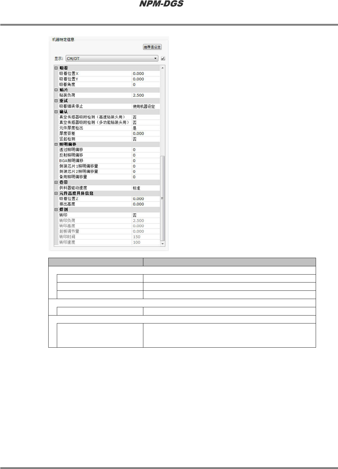 程序手册 6.5 添加新的元件 Page 6-96 EJS9AC-MB-06P-18 项目 说明 ‘ 吸着 ’ ‘ 吸着位置 X’ 偏离平时吸着位置的 X 方向偏移量。 -5.0 ~ 5.0 ‘ 吸着位置 Y’ 偏离平时吸着位置的 Y 方向偏移量。 -5.0 ~ 5.0 ‘ 吸着角度 ’ 在吸着时吸嘴旋转的角 度。 ‘ 贴片 ’ ‘ 装载 ’ 在进行贴片时对元件施 加的负荷。 ‘ 重试 ’ ‘ 吸着错误停止 ’ 设定在发生吸着错误时 ,…