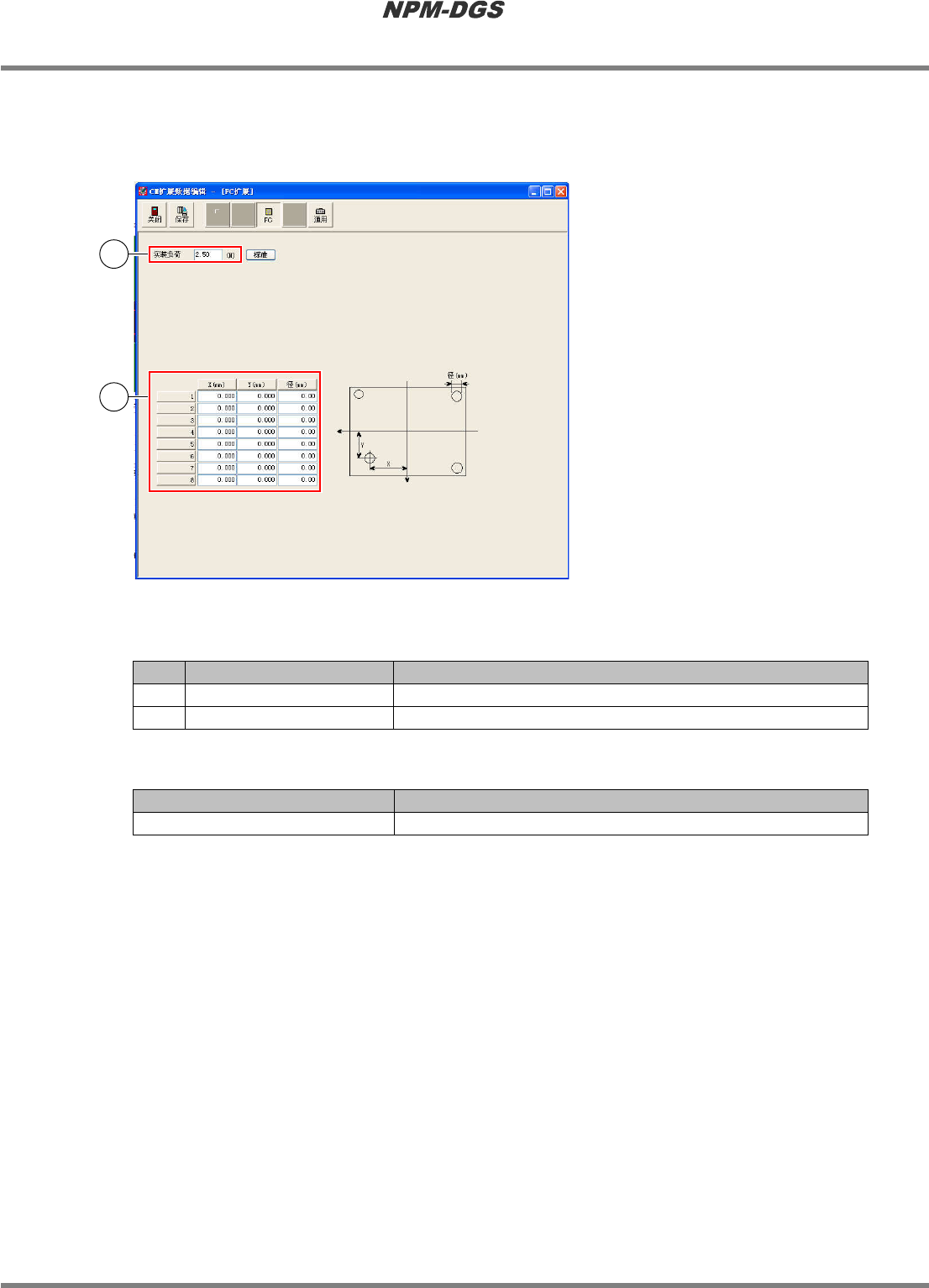 扩张数据编辑器时,设定贴装负荷的值。