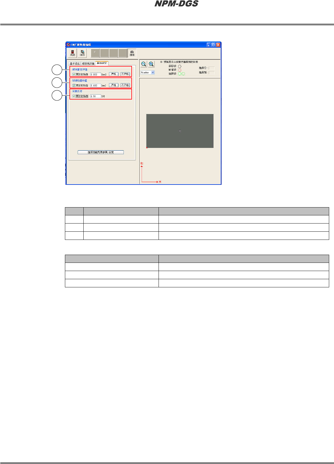 除了输入球间距的容许值以外,可自动设定