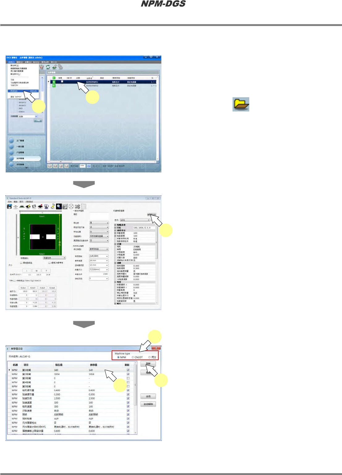 程序手册 6.7 现有元件的编辑 EJS9AC-MB-06P-18 Page 6-175 n 智能默认 ( 多个元件的情况下 ) 1 选择将机器特定信息变更为推荐值的 元件。 2 选择菜单栏的 [ 编辑 ] ® [ 推荐值整体设 定 ] ,或者在所选元件上弹出右击菜单, 选择 [ 推荐值整体设定 ] 。 · 显示出 < 推荐值整体设定 > 画面。 3 选择设定推荐值时的吸嘴分配。 • ‘ 添加推荐吸嘴 ’ : 维持原来的吸嘴…