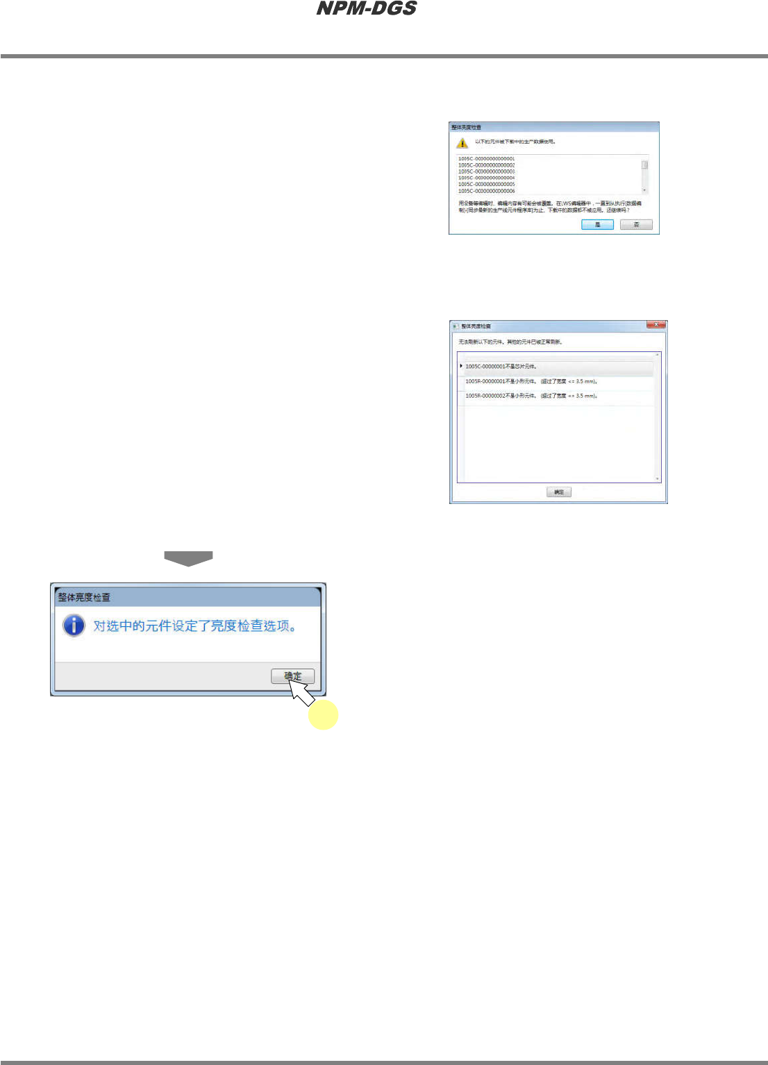 程序手册 6.7 现有元件的编辑 EJS9AC-MB-06P-18 Page 6-181 n 元件的正反反转用的亮度检查设定 ( 整体设定 ) 在这个功能下,能够在元件管理画面 上 设定元件的正反反转确认项目 。 对主元件程序库、生产线元件程序库 中 的任何一方的元件都可进行设 定 。 1 选择想要进行整体编辑的元件。 * 选择多个时, 在按 [Shift] 键或 [Ctrl] 键的同时选择 元件。 2 选择右击菜单上的 [ 整体编辑 …