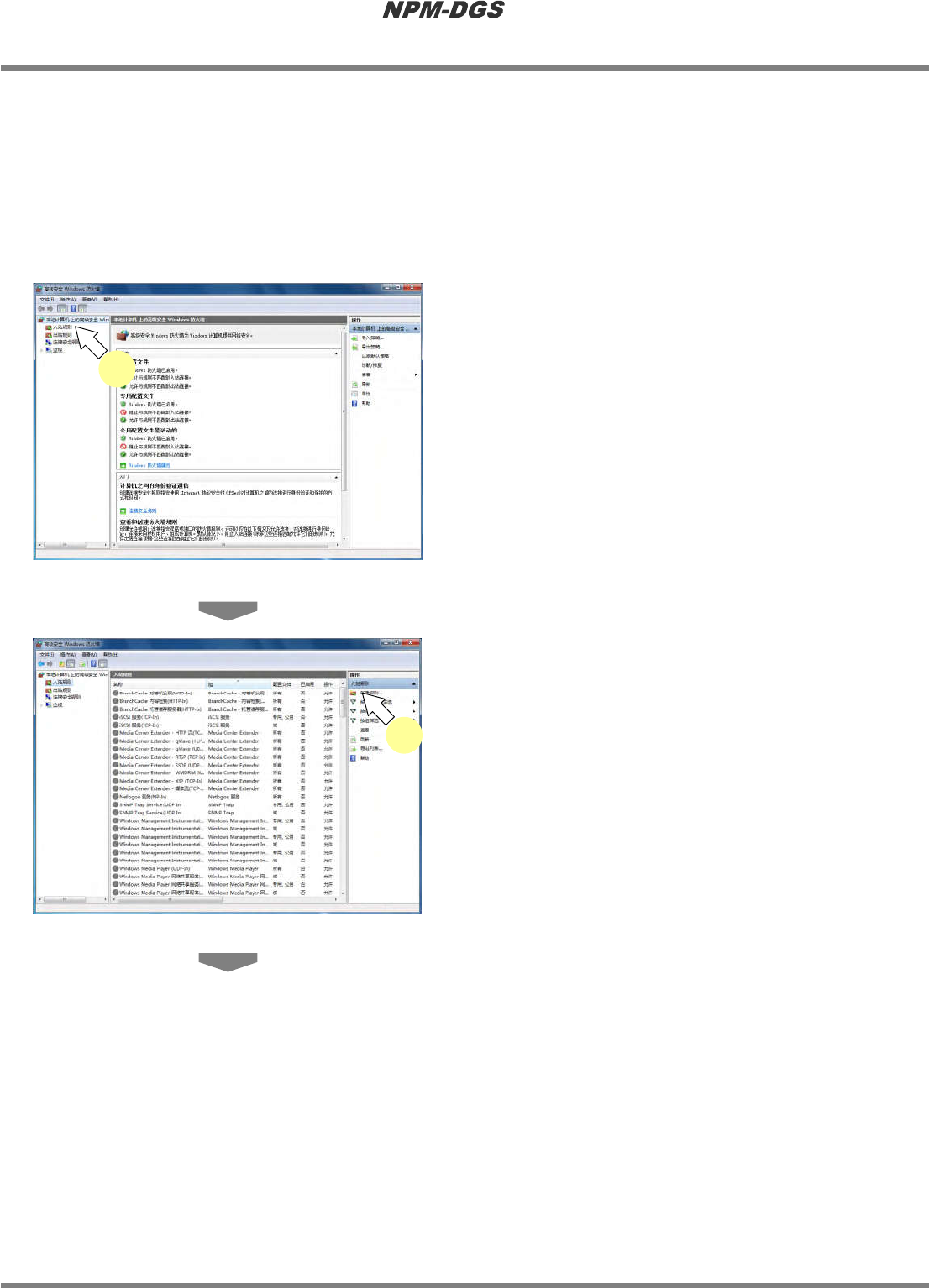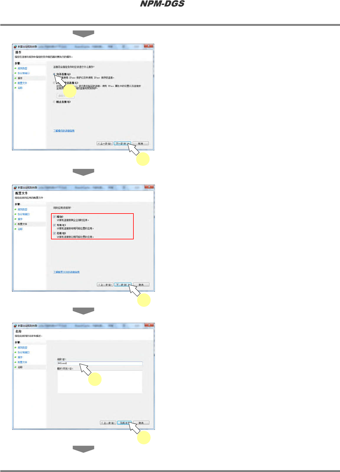 程序手册 2.1 NPM-DGS 的安装 EJS9AC-MB-02P-12 Page 2-61 33 确认在 ‘ 出站规则 ’ 一览中,追加了 ‘DGSsend’ 。 34 关闭 < 高级安全 Windows 防火墙 > 画 面。 35 关闭 <Windows 防火墙 > 画面。 Install020402-19C01 33 34 Install020402-20C01 35