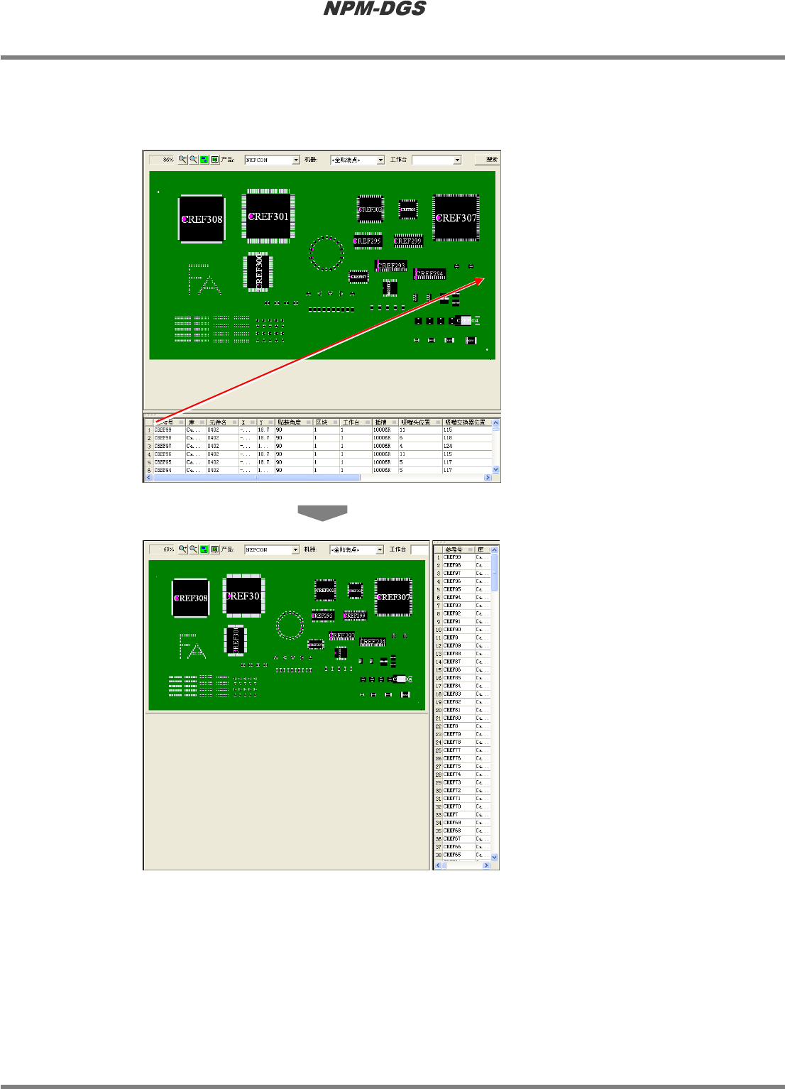 点击贴装点列表上部并拖拉,即能够变更贴装点列表的显示位置。