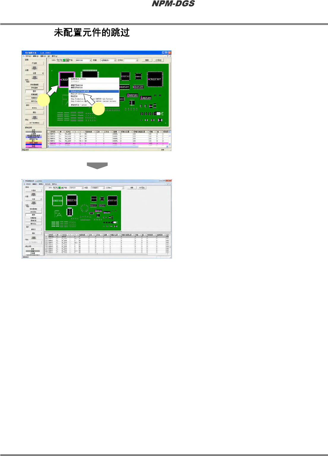 框架勾住跳过状态的元件,并在贴装点一览的