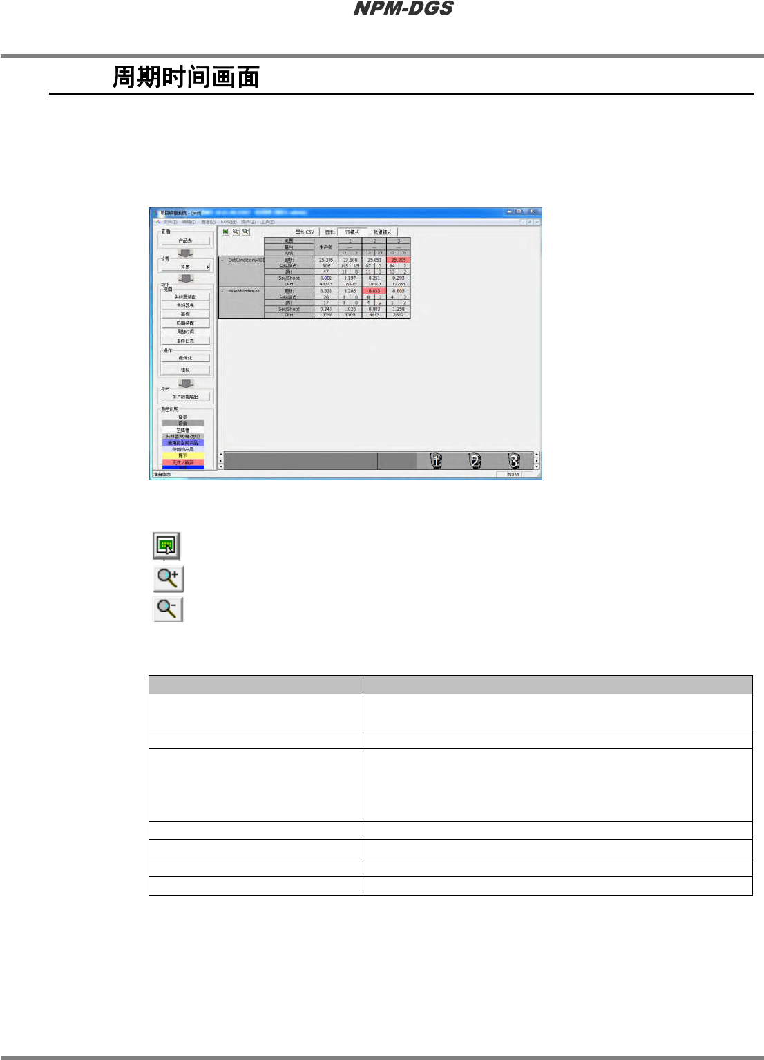 显示周期时间。在瓶颈的情形下,背景颜色转为红色。