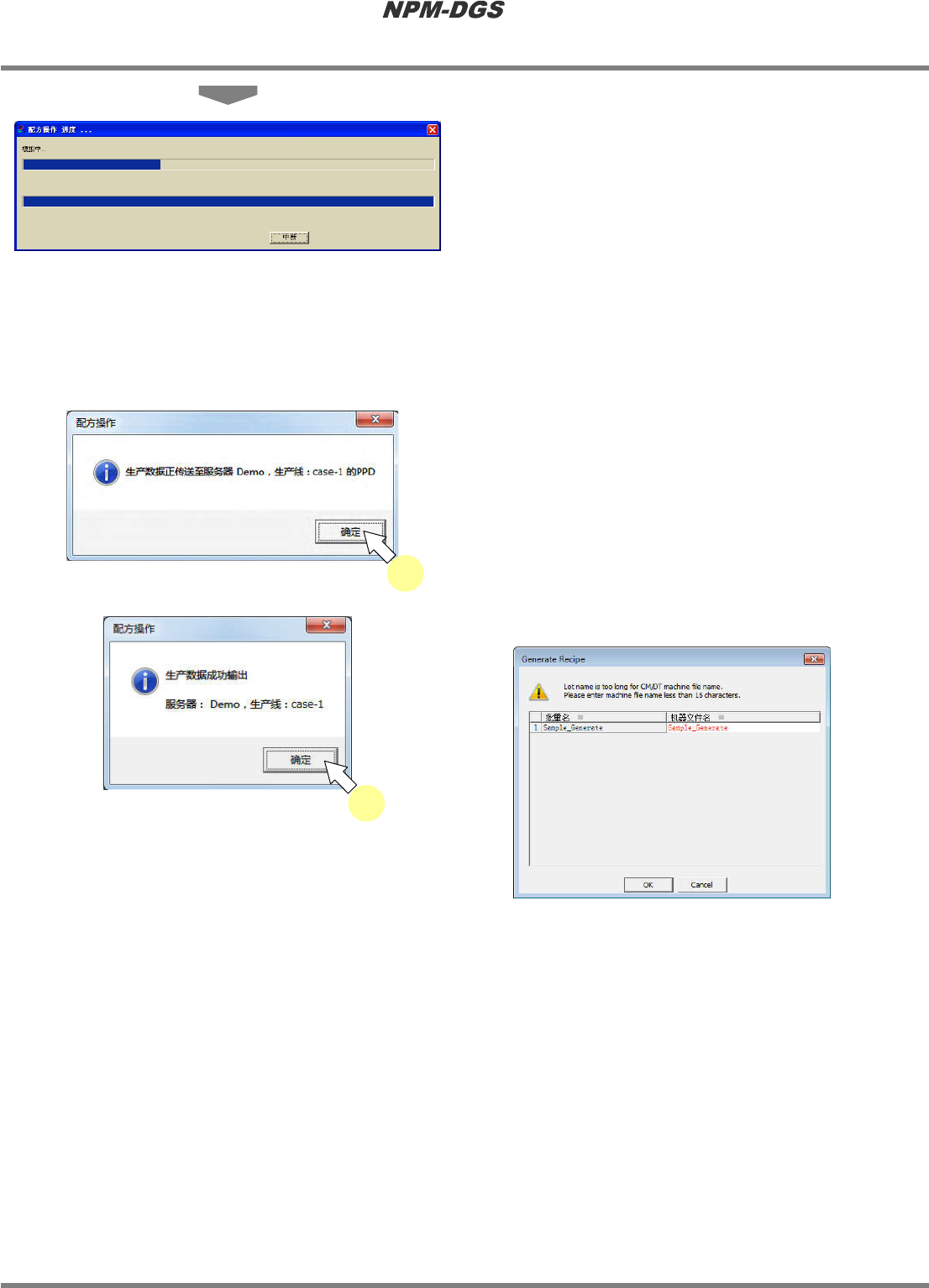 程序手册 7.12 生成数据 Page 7-210 EJS9AC-MB-07P-20 · 显示出构成进度状况画 面。 * 在 CM 混合生产线的情形下 ,生产数据将会被 分割输出到 LNB 和 PT 。 因此,重新展开通过 CM 执行贴装的数据时, 请在 NPM-D GS 的数据编制编辑器上重新执行 展开后,再通过数据输 出执行覆盖操作。 不伴随重新展开的编辑 ( 元件数据的编辑、 贴装 点数据的编辑等 ) 还可通过 PT 进行编辑。 …