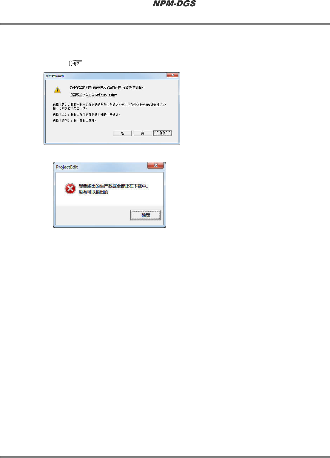 不分割输出生产数据时,将显示错误对话框。