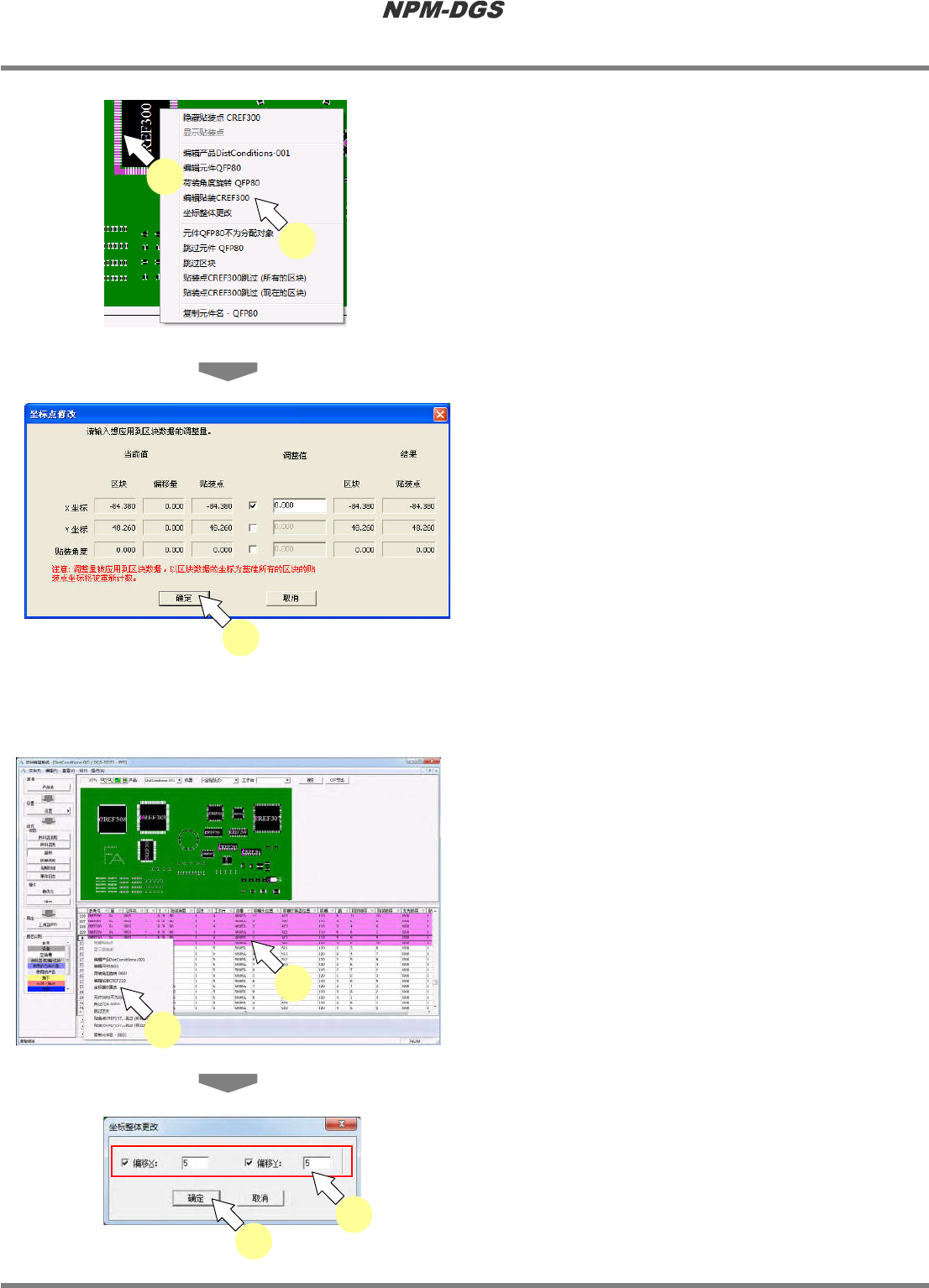 程序手册 9.4 关于项目编辑系统画面 EJS9AC-MB-09P-14 Page 9-111 n 基板画面上的元件搜索和替换 在本功能下,通过 ‘ 插槽位置 ’ 、 ‘ 吸嘴位置 ’ 、 ‘ 参考号码 ’ 、 ‘ 元件名 ’ 等来搜索元件。 在 PPD 编辑器、 LWS 编辑器下,还能够替换元 件。 在 PPD 编辑器上,进行下 述的两种替换。 l 替换为登录在元件库内 的元件 ( 同时替换元件数据。 ) l 不变更元件数据而只替 换…