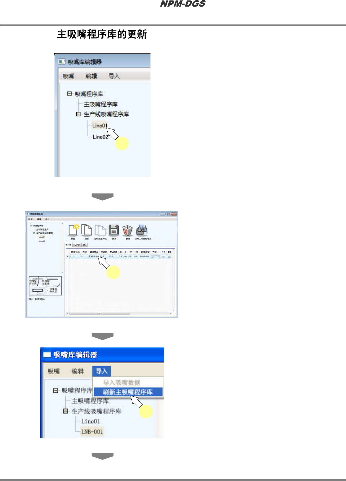 选择吸嘴程序库内的生产线吸嘴程序