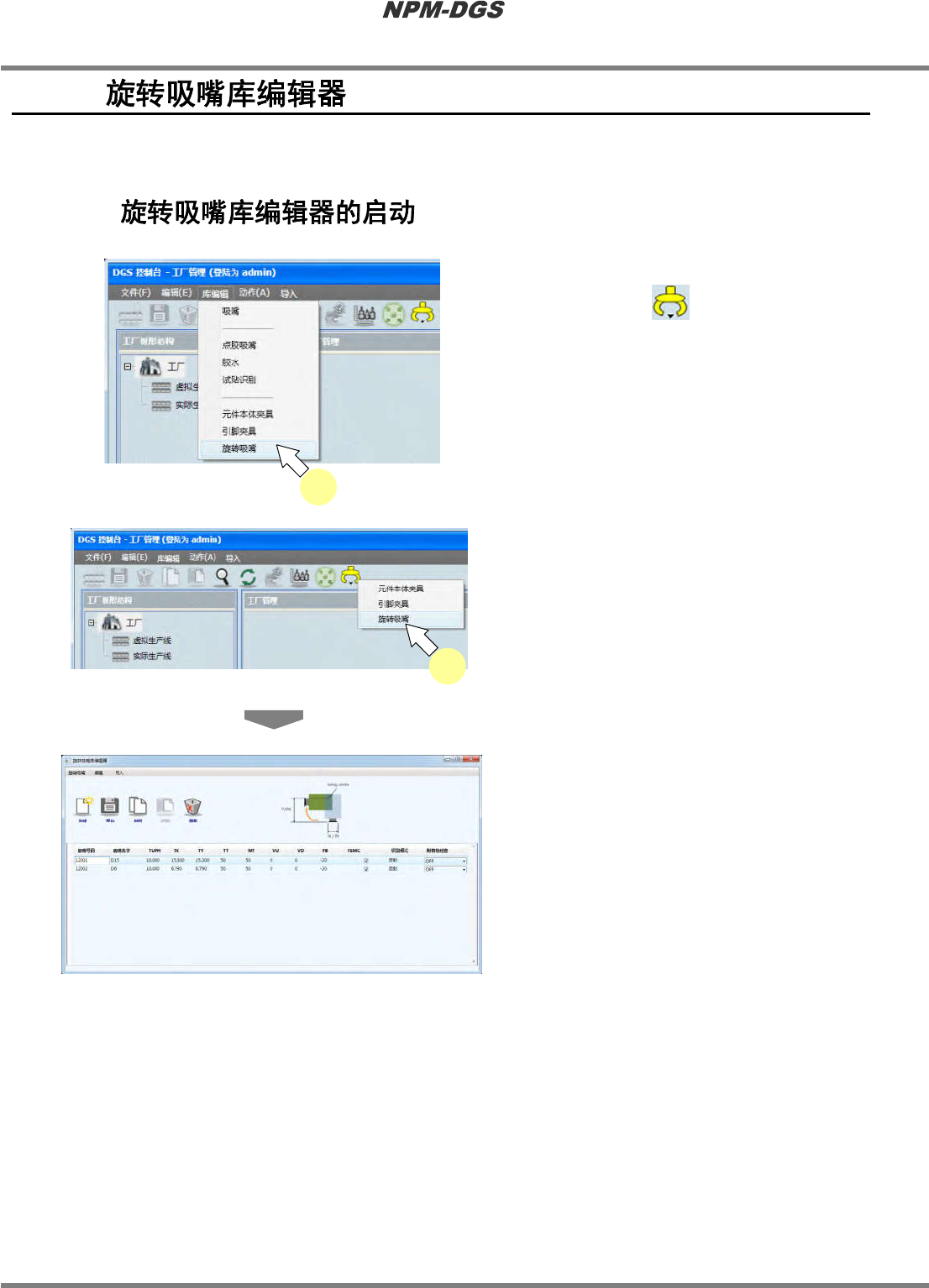 所谓的旋转吸嘴库编辑器,是指对在插入头上使用的旋转吸嘴的基本数据进行管理的编辑器。
