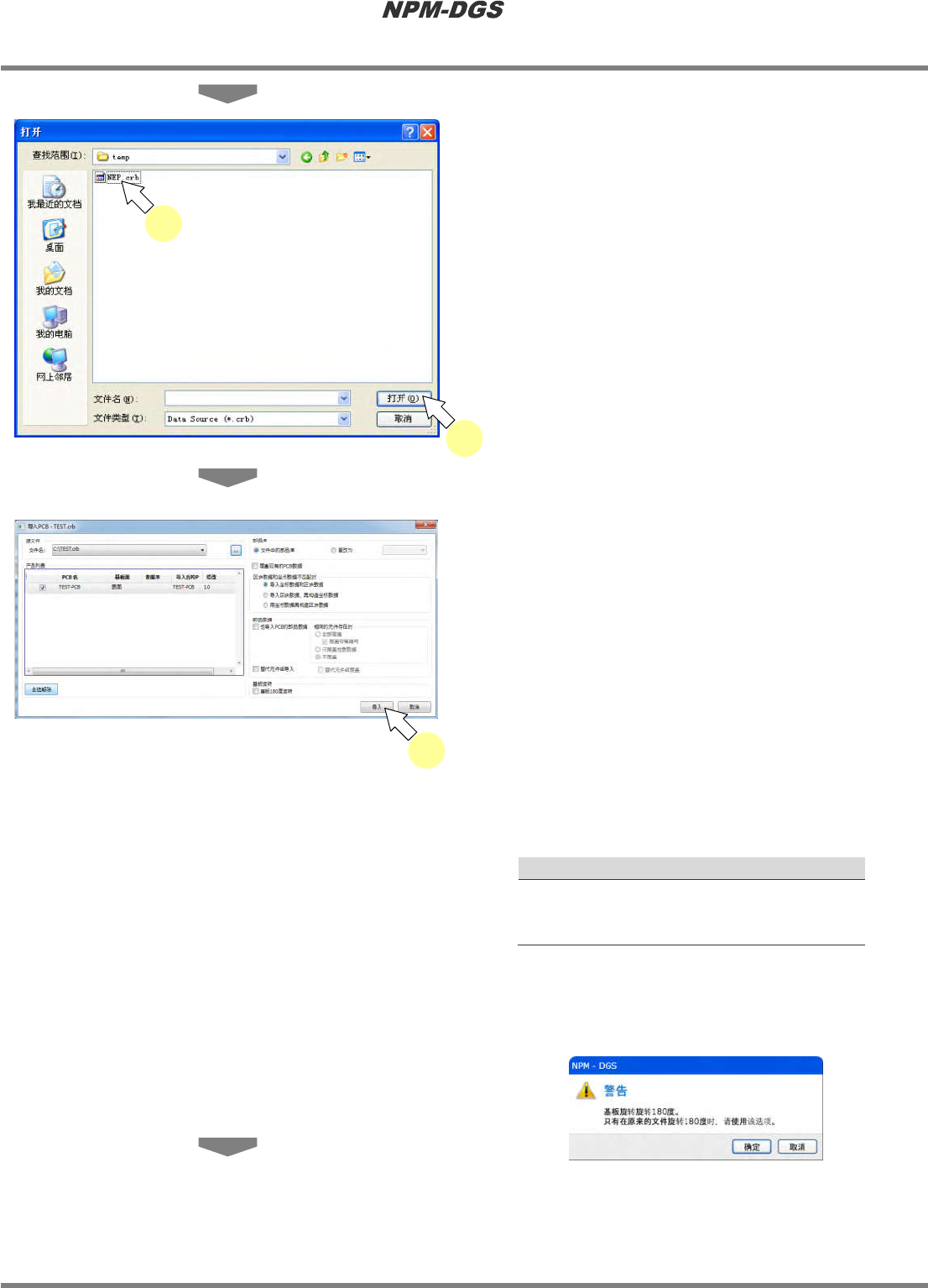 程序手册 5.6 生产数据的 PCB 导入 EJS9AC-MB-05P-20 Page 5-109 5.6 PCB 进行 PCB 的导入,则会由文件导入 PCB 数据。 5.6.1 NPM 从 NPM 生产数据导入 PCB 数据。 1 从画面左上的导航区域选择需要导入 的文件夹。 2 选择菜单栏的 [ 导入 ] ® [ 生产数据 ] 。 · 显示 <PCB 导入 > 画面。 3 点击 。 · 显示 < 打开 > …