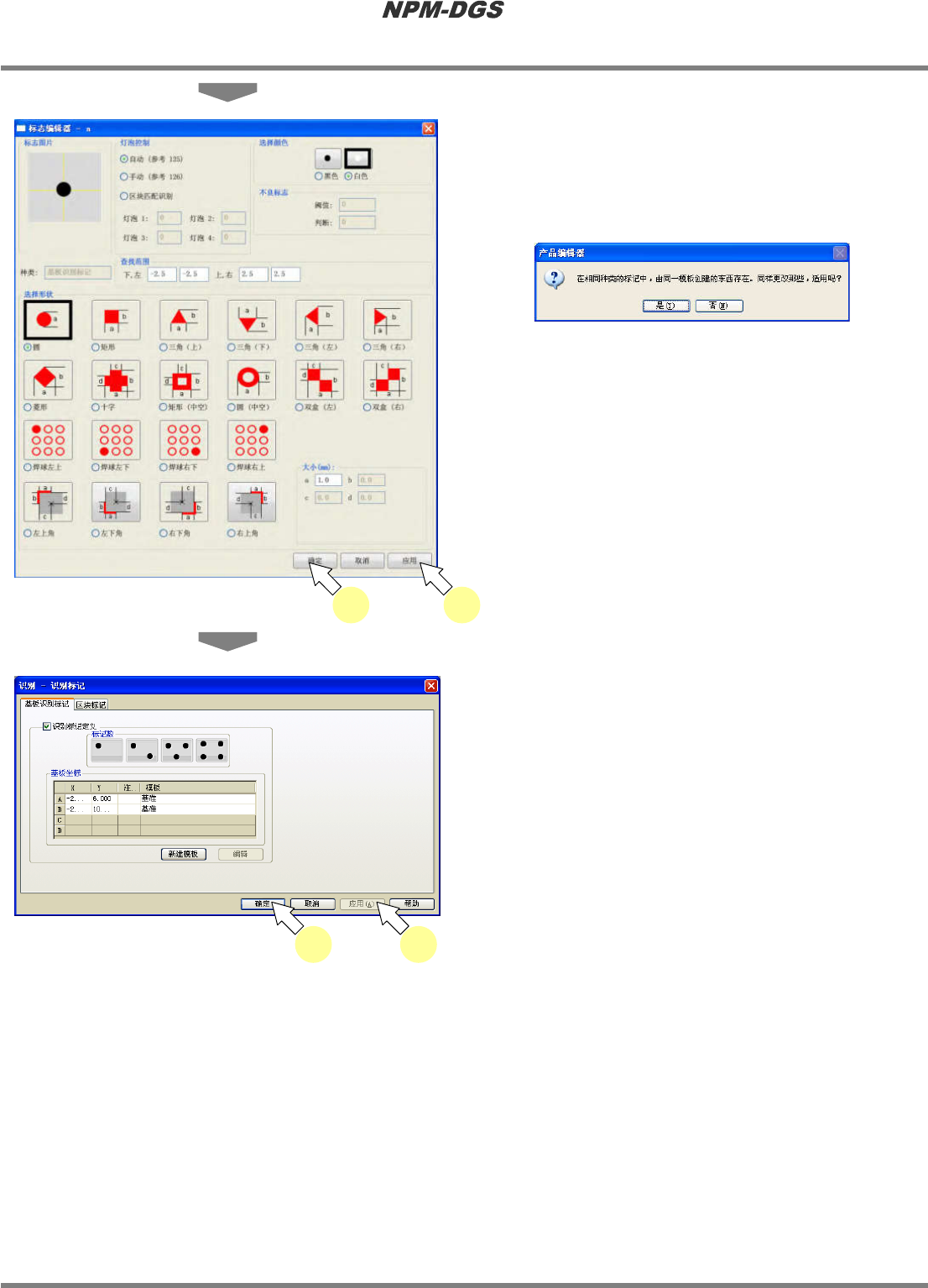 程序手册 5.8 PCB 编辑 EJS9AC-MB-05P-20 Page 5-173 ③ 选择删除面板识别基准 1 选择想要删除的面板基准后, 点击右击 菜单的 [ 删除面板基准 ] 。 2 显示出确认对话框,点击 [ 是 ] 。 * 将删除所选择的删除识 别基准,基准数量会减 少一个。 3 需要将变更反映至 PCB 时, 请点击 [ 确 定 ] 或 [ 应用 ] 。 Project 050802S-130C00 1 Projec…