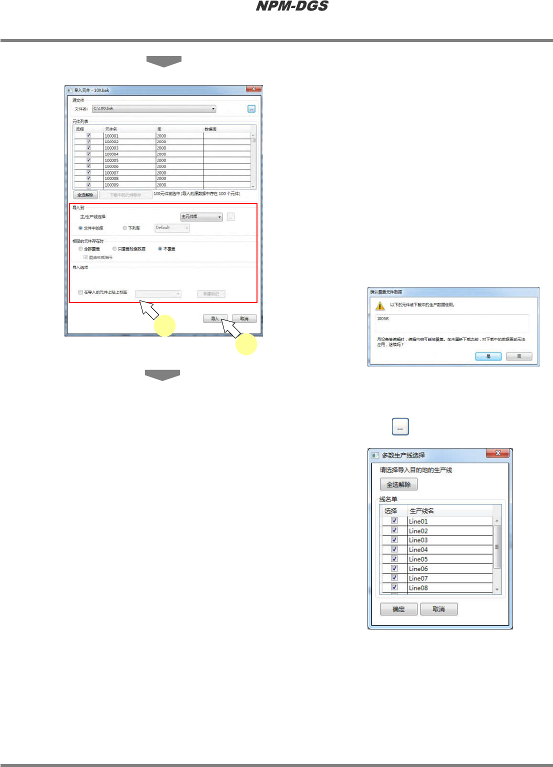 导入目的地可从主元件库与生产线元件库中选