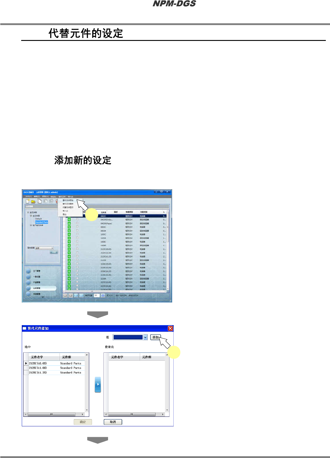 可用其它元件代替现在使用的元件时,要进行代替元件的设定。