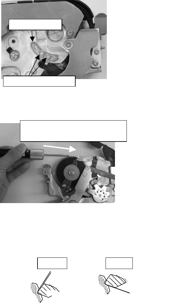 2)拧松棘轮爪止动器的 2 个固定螺丝,把棘轮爪止动器移动到最后位置。