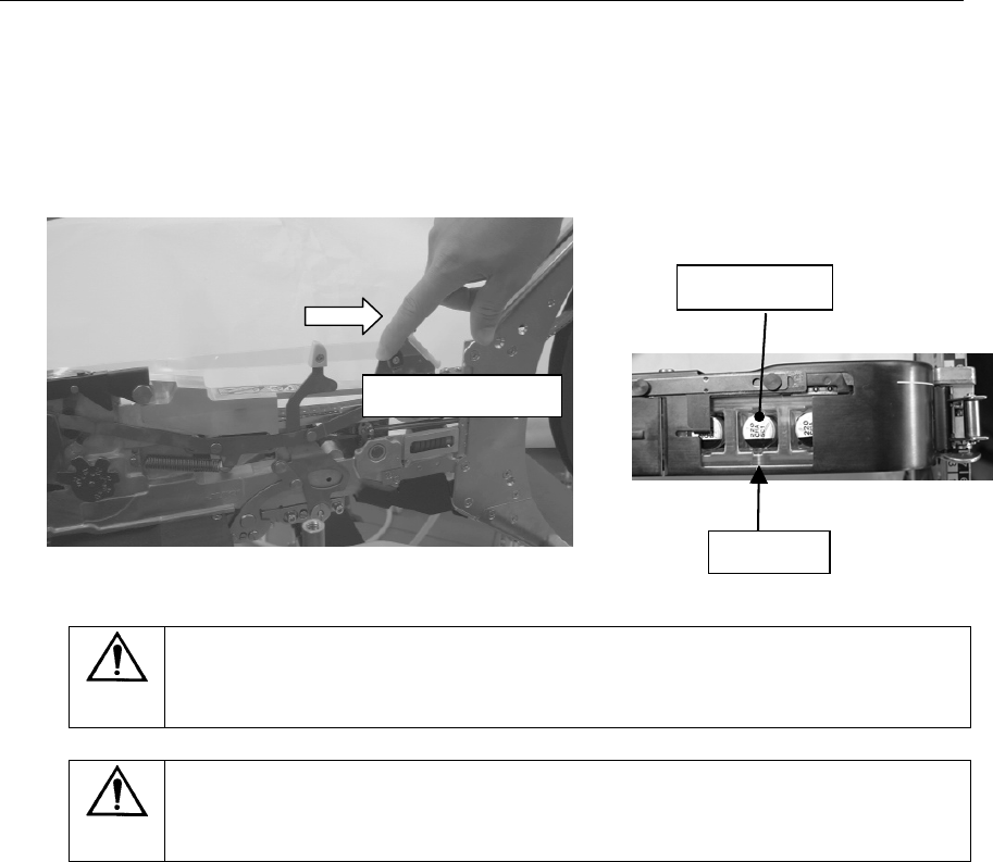 请向箭头方向移动手动传送杆,把元件传送到分离位置的前面。在安装到贴片机之前,元件在