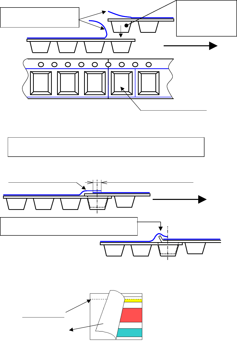 2) 从供料带上面,把对接的基准端面对准传送带的传送孔粘贴。对接带的传送方向中心应对