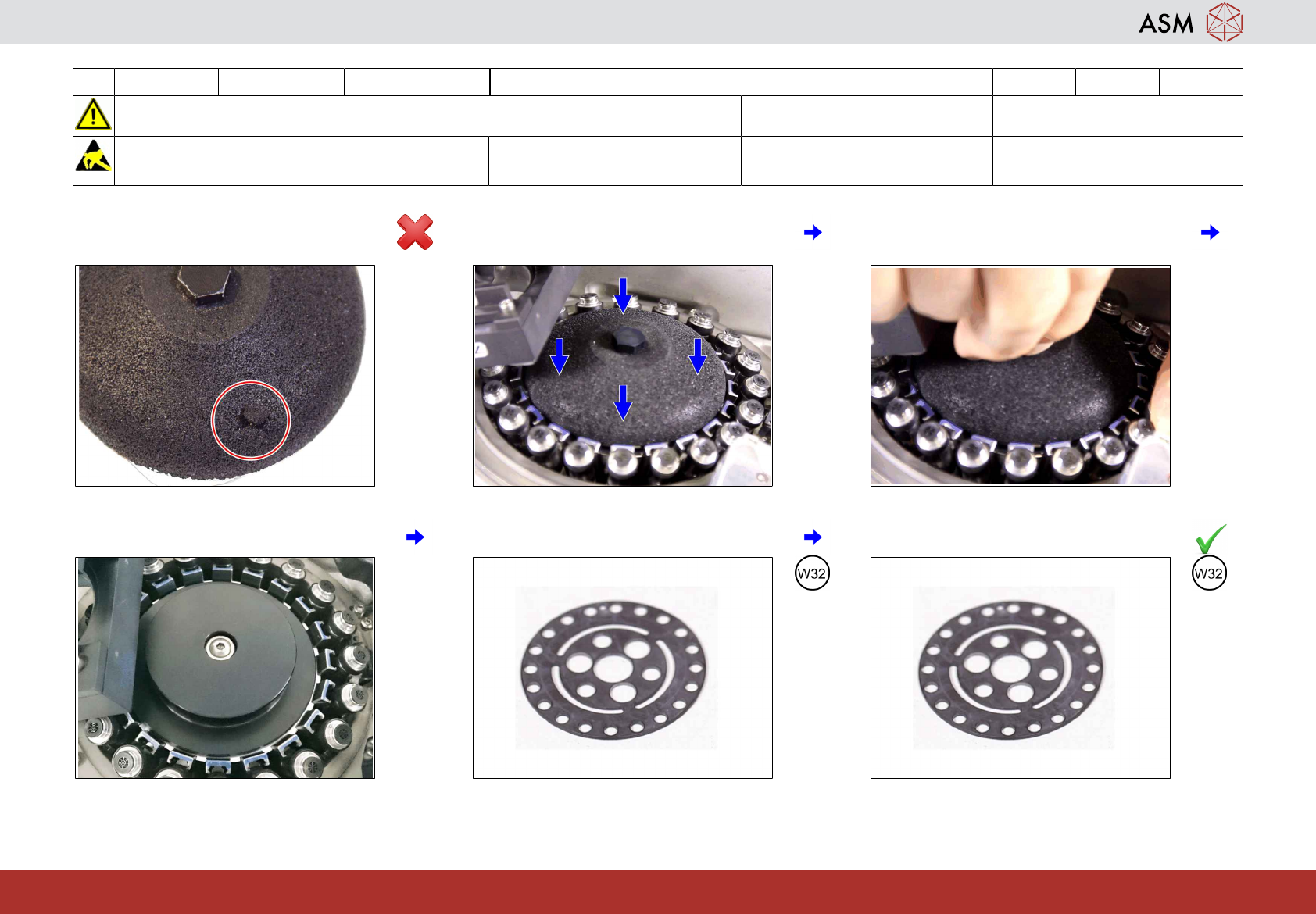 11 3-monthly C&P20 P2/M3 安装保持回路/孔板 8分钟 2 / 4 开始维护前,请参阅用户手册中的安全说明 注意!遵守防静电守则 工具: T21、T44、T78 易损件: W10、W18 耗材: C3、C5、C11、C22 www.asm-smt.com 7 如不正常,则请更换一个新的部件。 8 将密封垫正确安装到已维护的保持回路 上。 9 将已维护且装有密封垫的保持回路插入星 形盘架。注意定位销的位置是否…