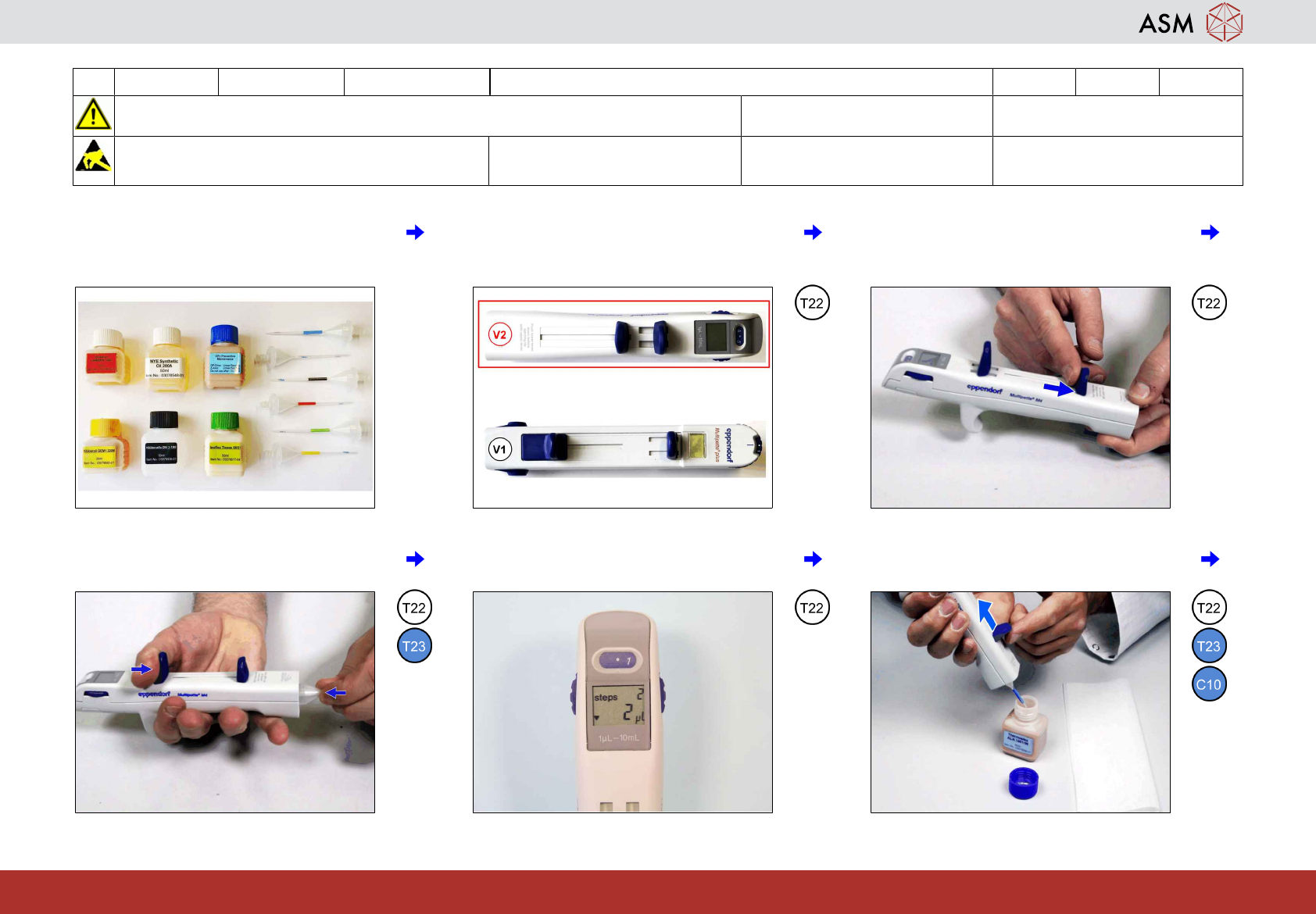 16 3-monthly C&P20 P2/M3 附录:维护光圈环 35分钟 2 / 2 开始维护前,请参阅用户手册中的安全说明 注意!遵守防静电守则 工具: T22、T53、T57、T92 易损件: W14、W27 耗材: C5、C11、C19、C31 www.asm-smt.com 7 润滑 O 型环。 8 将 O 型环插入光圈环。 9 将密封垫正确安装到已清洁的光圈环上。 10 清洁分液器。参见“清洁分液器”附录。