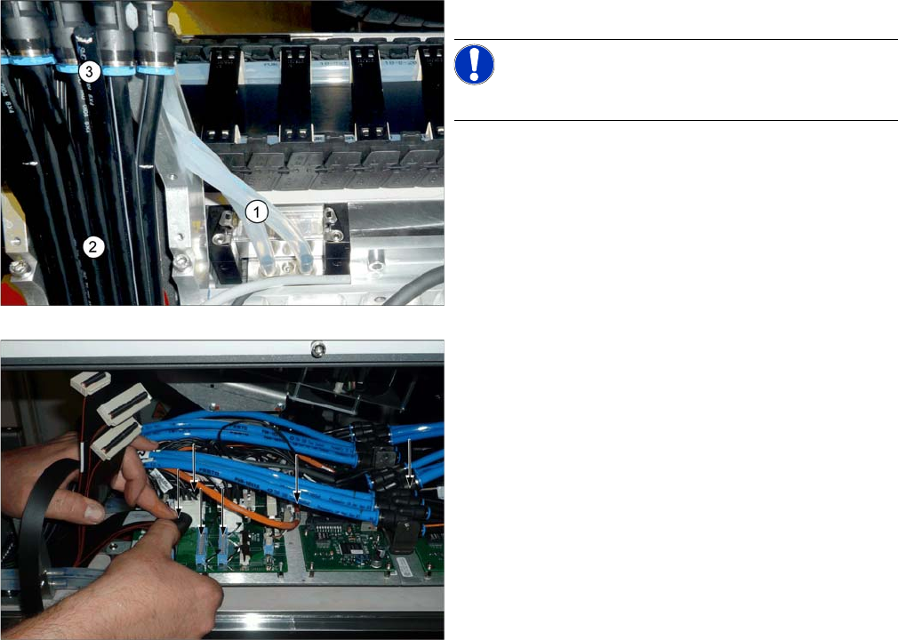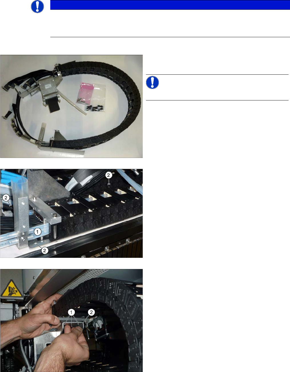 Installation 3.1.4 Removing the Top Cover Fitting the Y Trailing Cable for Gantry 1/3 Gantry Retrofit Portalnachrüstung 119 3.6 3 . 6 F it t in g t h e Y T r a ilin g C a b le f o r G a n t r y 1 / 3 Fitting the Y Traili…