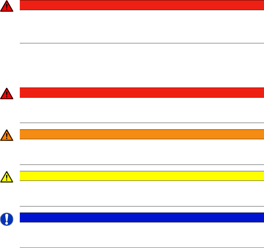 For the purposes of this manual, this indicates that fatal or severe injuries or considerable dam-
