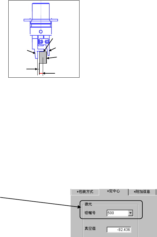 ① 抓取位置: “Y”项,输入元件中心与夹持吸嘴固定侧手臂抓取面中心的偏移值