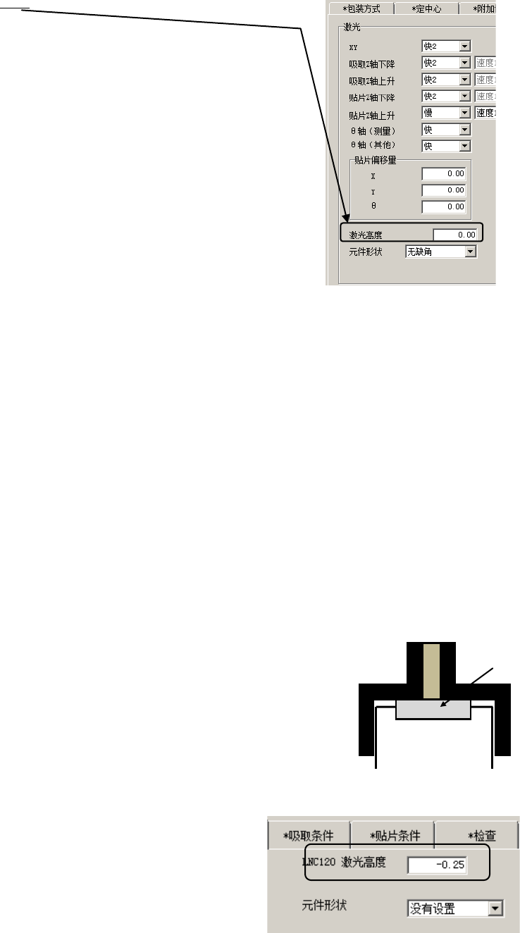 ③设置元件数据。设置激光高度 指定从臂前端至激光面的距离。