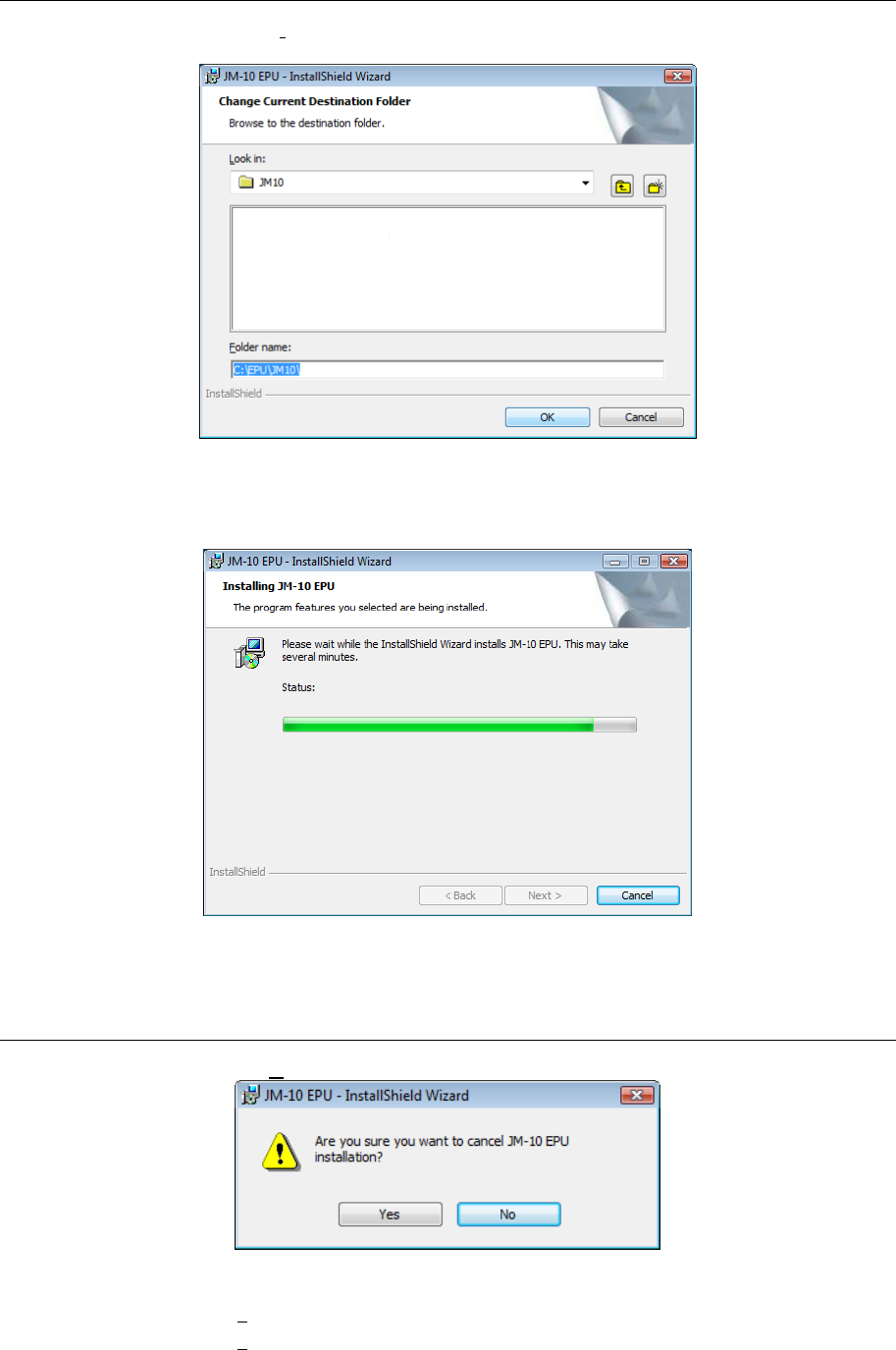 EPU 使用说明书 第 2 章 安装 2-6 2-2-1 执行安装 (1) 确认安装位置,按下 <I nstall > 按钮。 图 2- 2- 3 确认安装位置 (2) 开始安装。 图 2- 2- 4 显示安装时的进度 2-2-2 中止安装 (1) 在安装时,如果按下 <C ancel > 按钮,画面会显示确认是否停止安装的提示。 图 2- 2- 5 确认是否停止安装的提示 按下 <Yes> 按钮…
