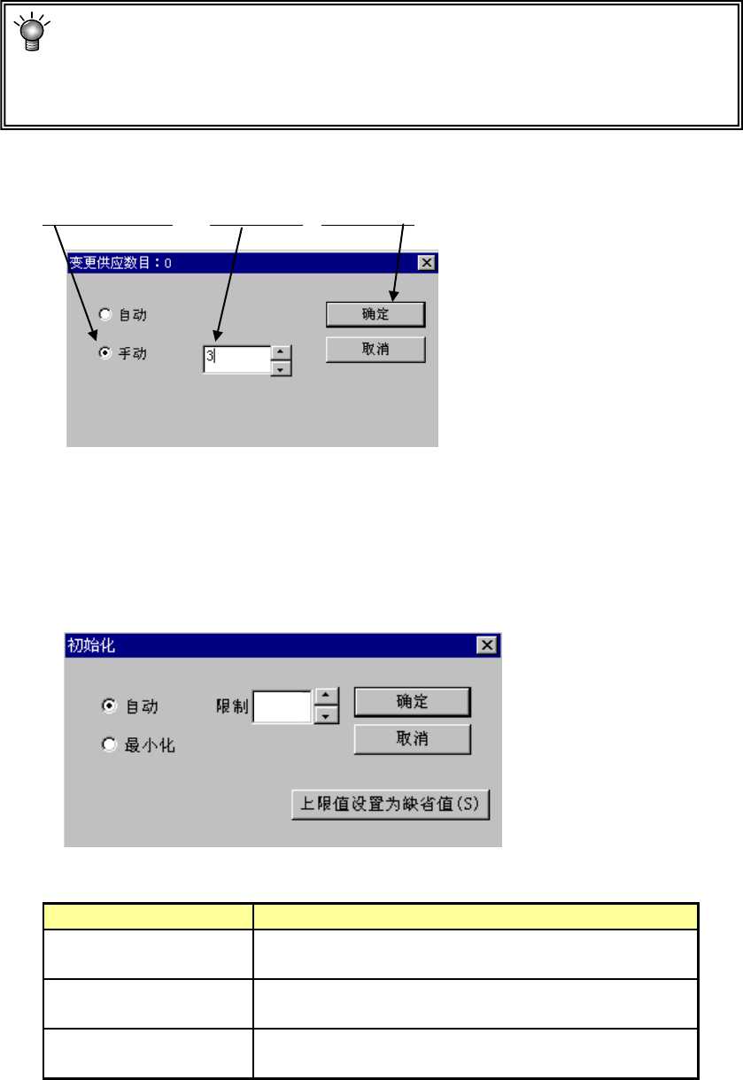 在“元件供应数”显示画面中单击初始化,则显示初始化画面。