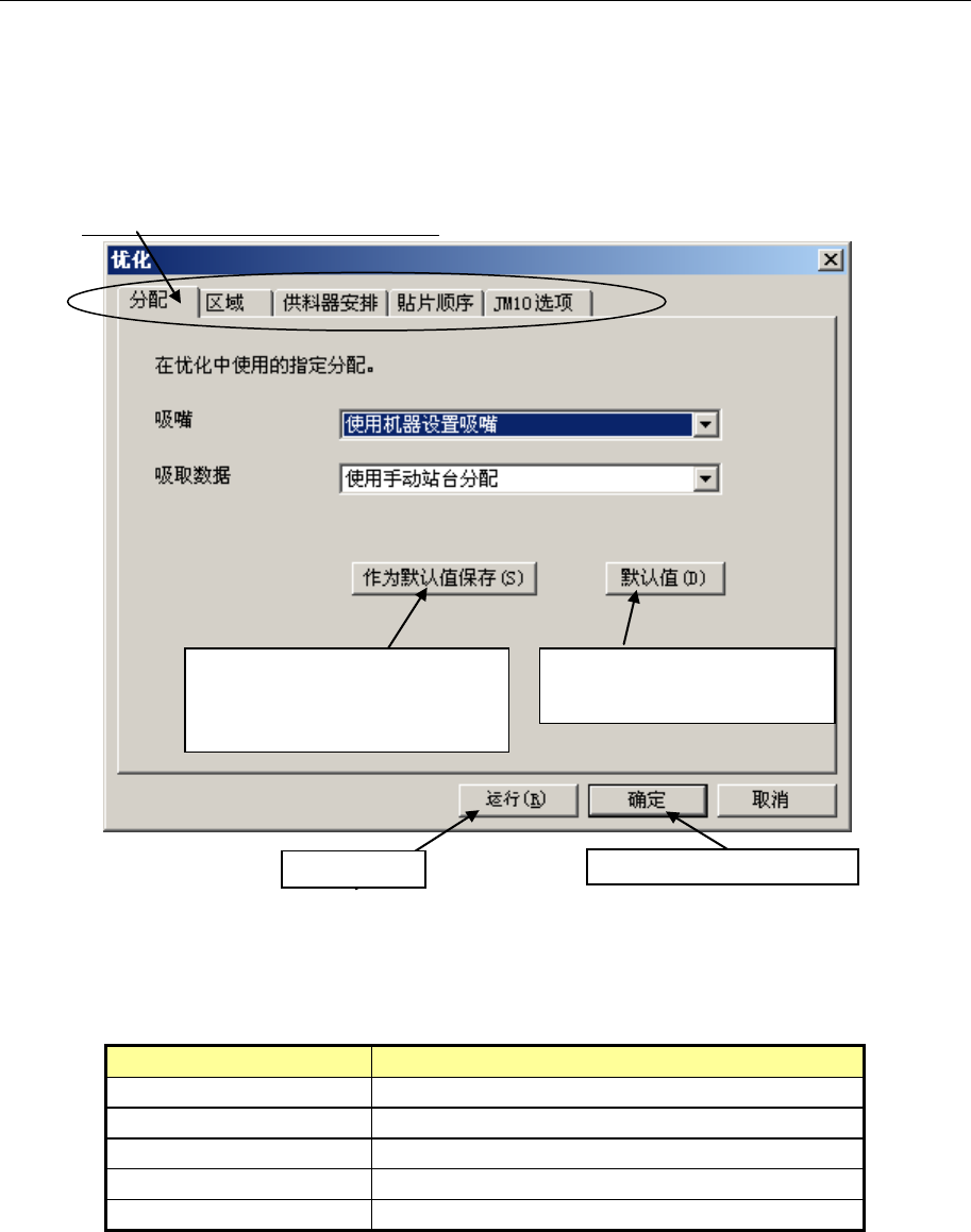 优化,需要进行下列图示(包括”分配”的)5项条件设置。