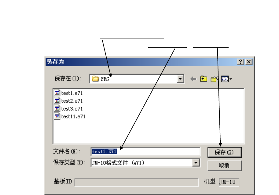 EPU 使用说明书 第 4 章 制作生产程序 4- 140 4-2-2-2 保存文件 新建程序时,从优化条件设置画面中单击「执行」按钮后,显示“另存为” 画面。请指定文件名并 进行保存。 ① 指定“保存位置 ”的 “驱动器”和 “目录” 。 ②输入文件名, 单击「保存」 。 图 4-2-2-2-1 保存文件