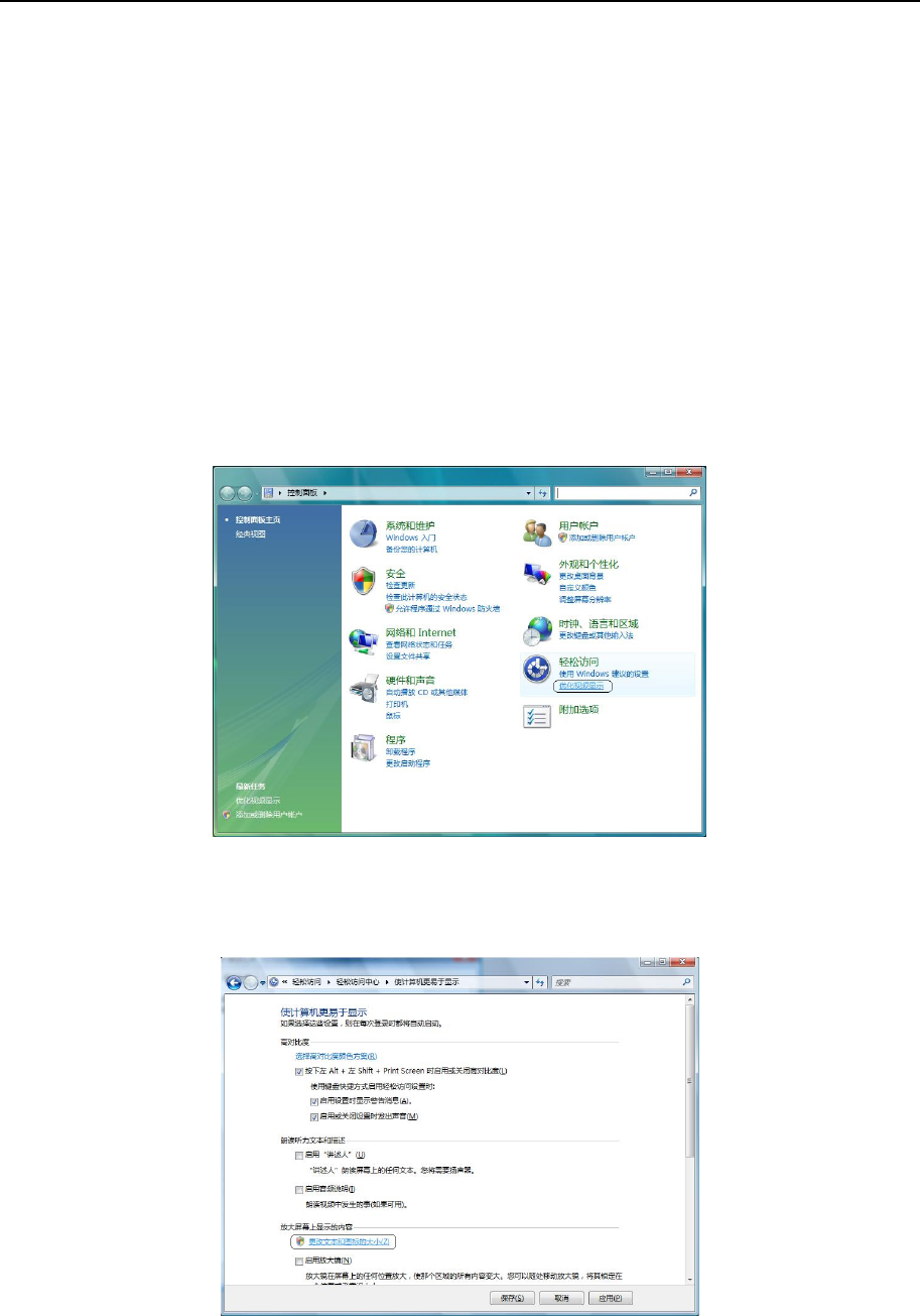 ① 在控制面板中,选择「电脑的简单操作」-「优化视频显示」。
