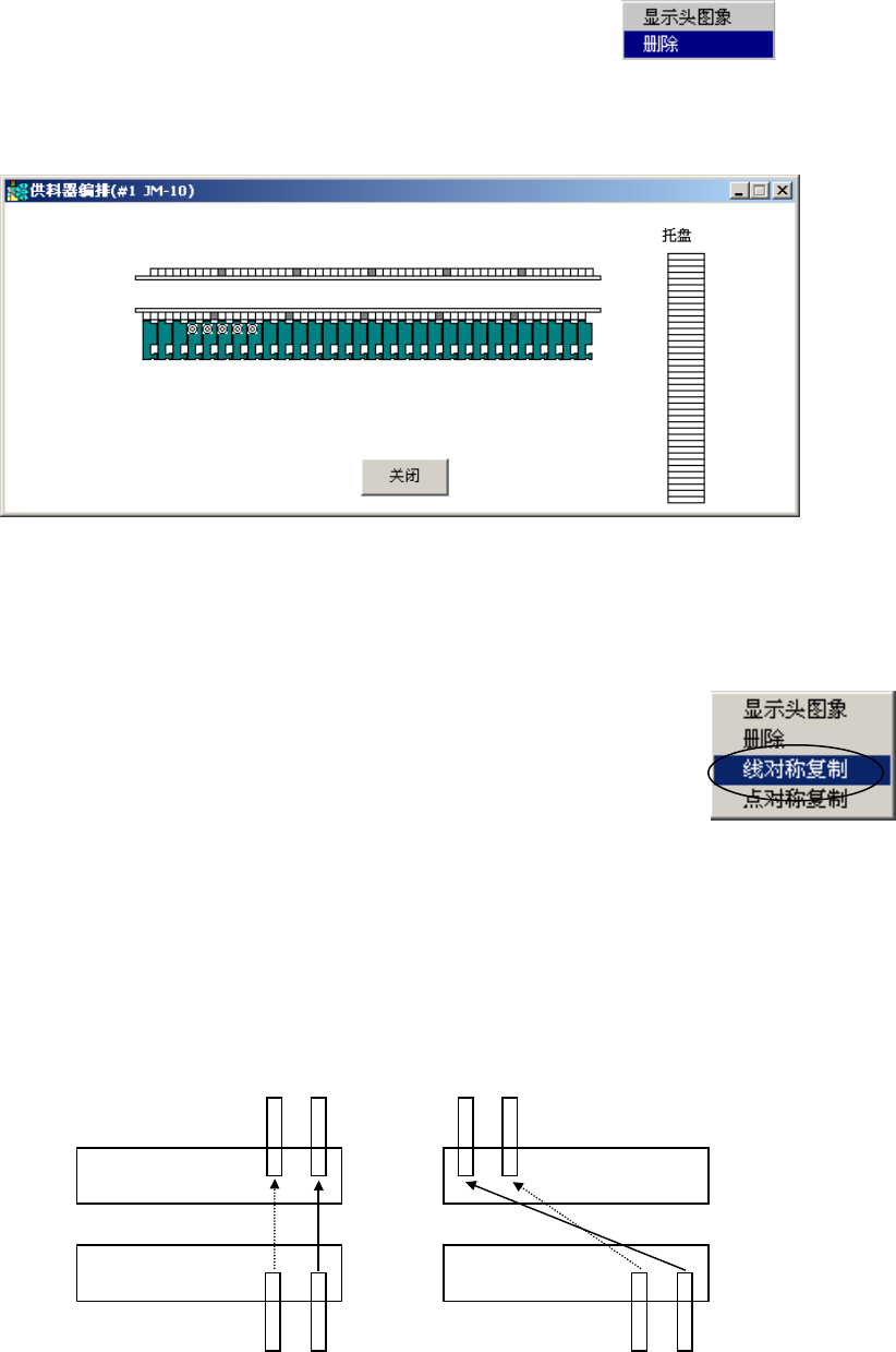 选择要复制的送料器后,点击鼠标的右键,从显示的菜单中选择线对称复
