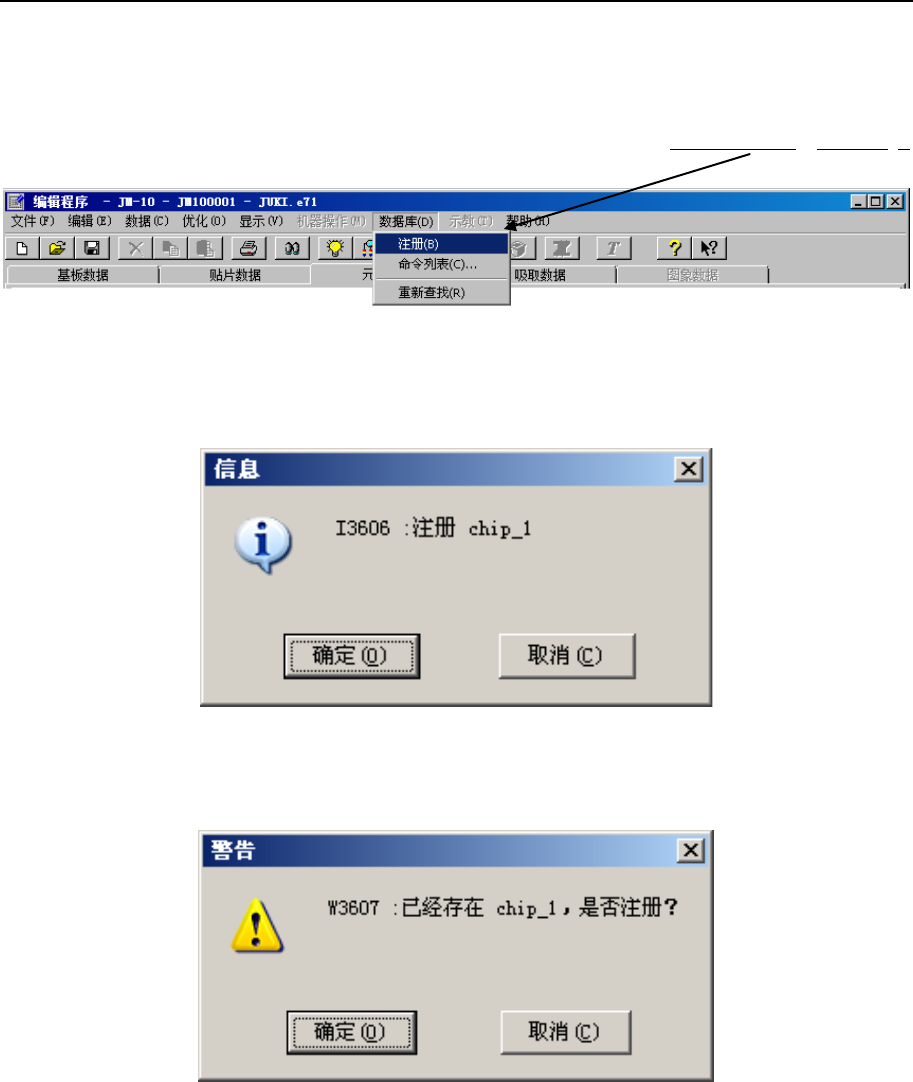 EPU 使用说明书 第 5 章 数据库 5-6 把环境设置的数据库注册完成通知设定为 「否」 的情况下, 数据库注册完成时, 不显示上述 通知。 ●对元件名逐一进行注册。 ●注册目标数据库是指 “环境设置 ( 参见 4-3-2 环境设置 ) ” 所指定的数据库。