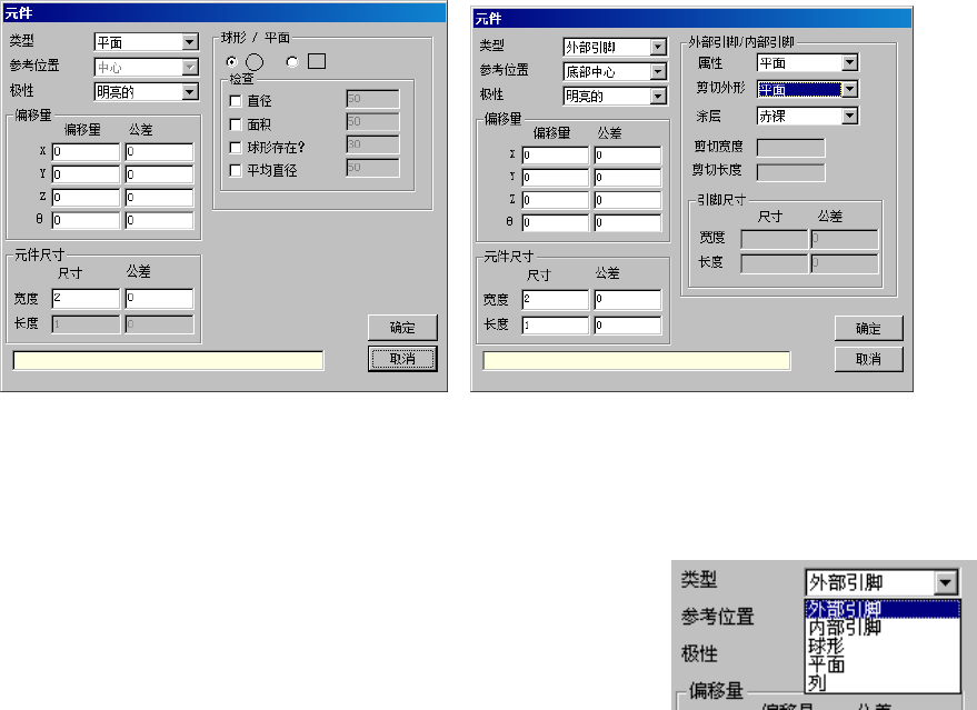 选择了球或平面(焊盘)时的画面 选择了外部引脚或内部引脚时的画面