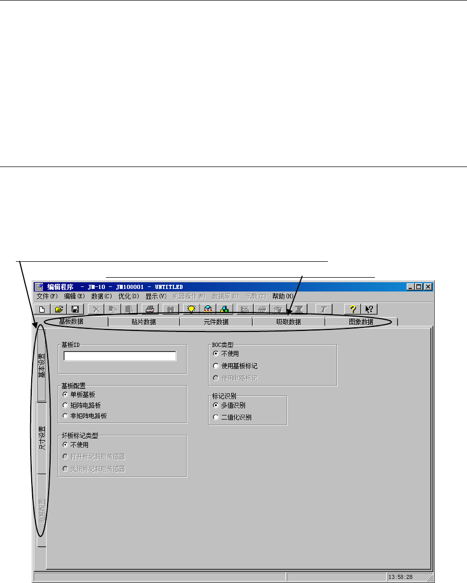 切换基板数据/贴片数据/元件数据/吸取数据/图像数据。