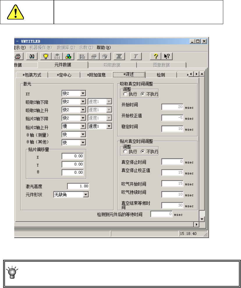 EPU 使用说明书 第 4 章 制作生产程序 4- 66 设置激光识别以 外 ( 激光定中心后 的贴片角度的 旋转等 ) 的 θ 轴 的加速度。