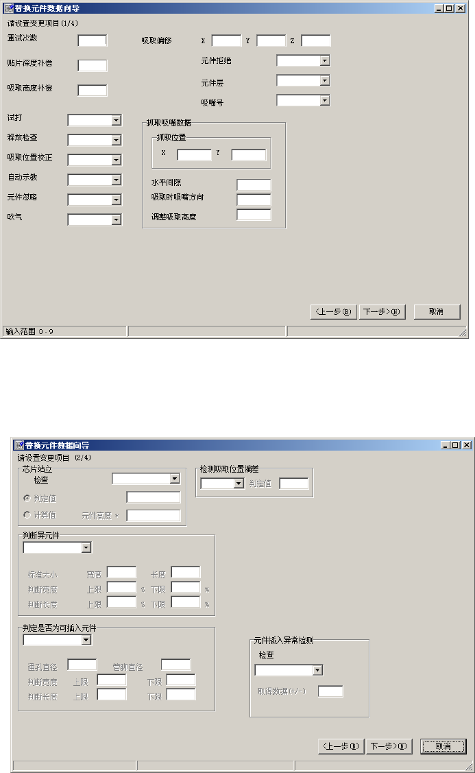 EPU 使用说明书 第 4 章 制作生产程序 4- 153 (c) 显示元件数据的检查 2 选 项卡内容。 请输入各项数据 中需要变更的 值,点击 「 下一步 」。 图 4-3-1-1-9 替换设定 画面( 3 )