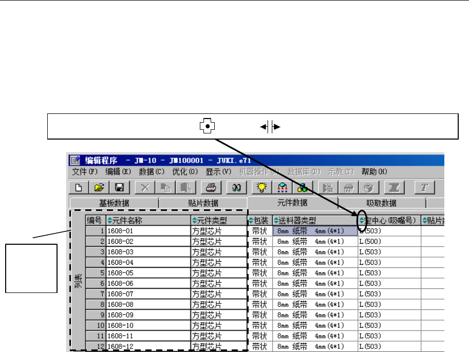 在贴片数据画面等列表上,可以调整单元格的宽度。