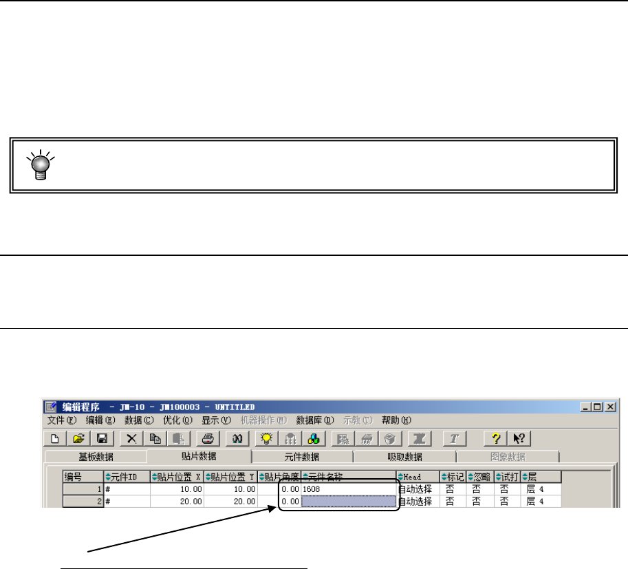 5-1-3 在贴片数据中已输入过元件名时