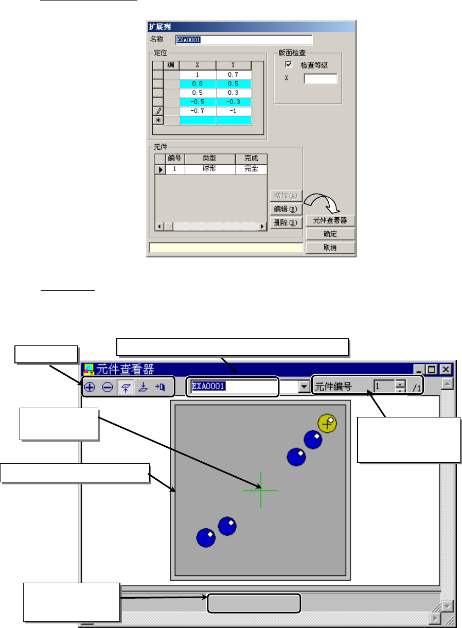 显示扩展列数据的配置图形。用旋转控制器移动定位编号,单击画面上的元件要素,则