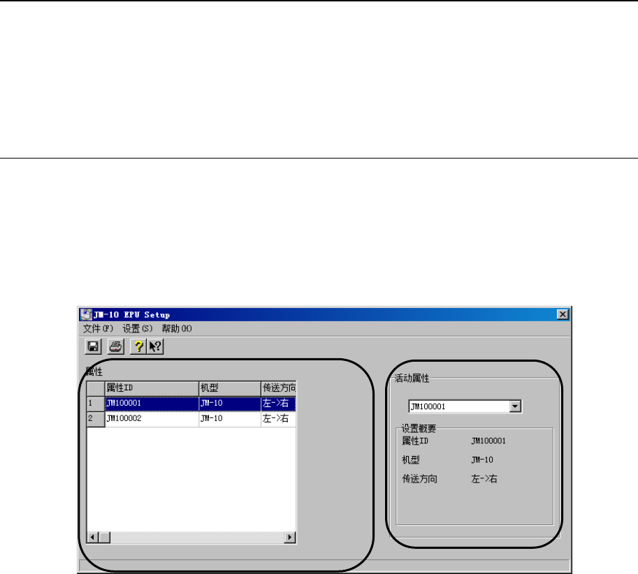 EPU 使用说明书 第 3 章 EPU 设置 3-6 3-4 启动画面 预先制作多个站台属性,激活其中一个,即可选择 EPU 的操作环境。 输入的密码正确时,即可显示设置 EPU 的主画面。 3-4-1 主窗口 输入密码后,即可打开下列 EPU 设置主窗口。 在 EPU 设置画面中显示注册的站台属性列表和当前「活动属性」概要。 第一次启动 EPU 设置时,请先设置「站台属性」。 详情请参见「 3- 7 站台属性的设置」。 已经编辑过 E…
