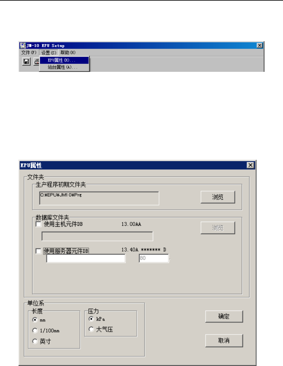 指定显示/输入时的单位系及生产程序目录、数据库文件夹目录等 ,对 EPU的环境进行设置。