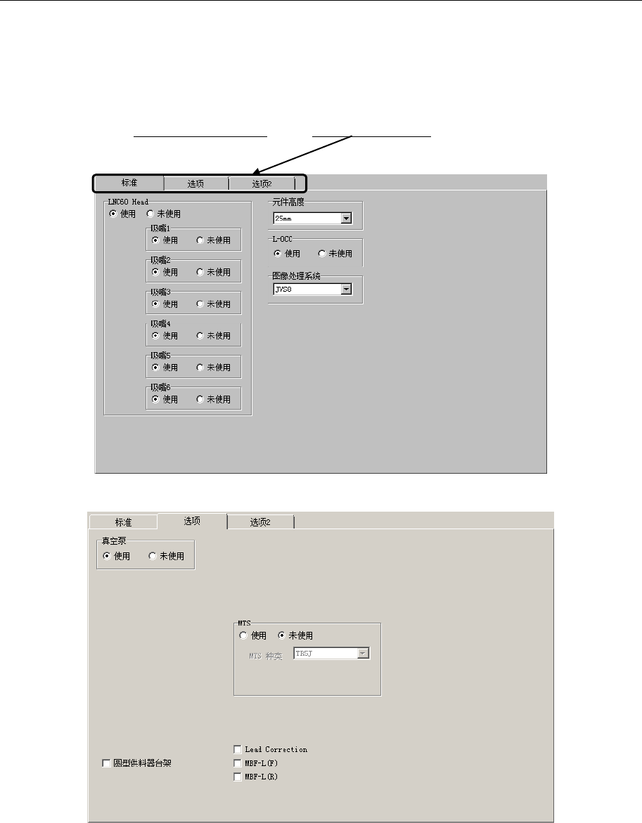 设置分为标准装备和选项装备,请在左上方的选项卡上选择。