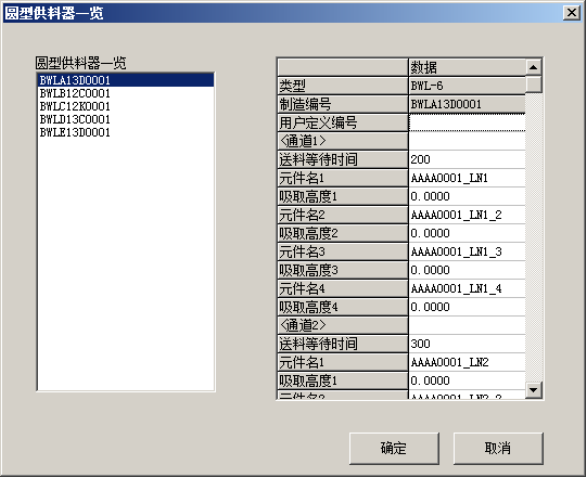 ◇ 在圆形供料器信息处可以编辑用户定义ID、供料时间、元件名、吸取高度。各轨道内最多