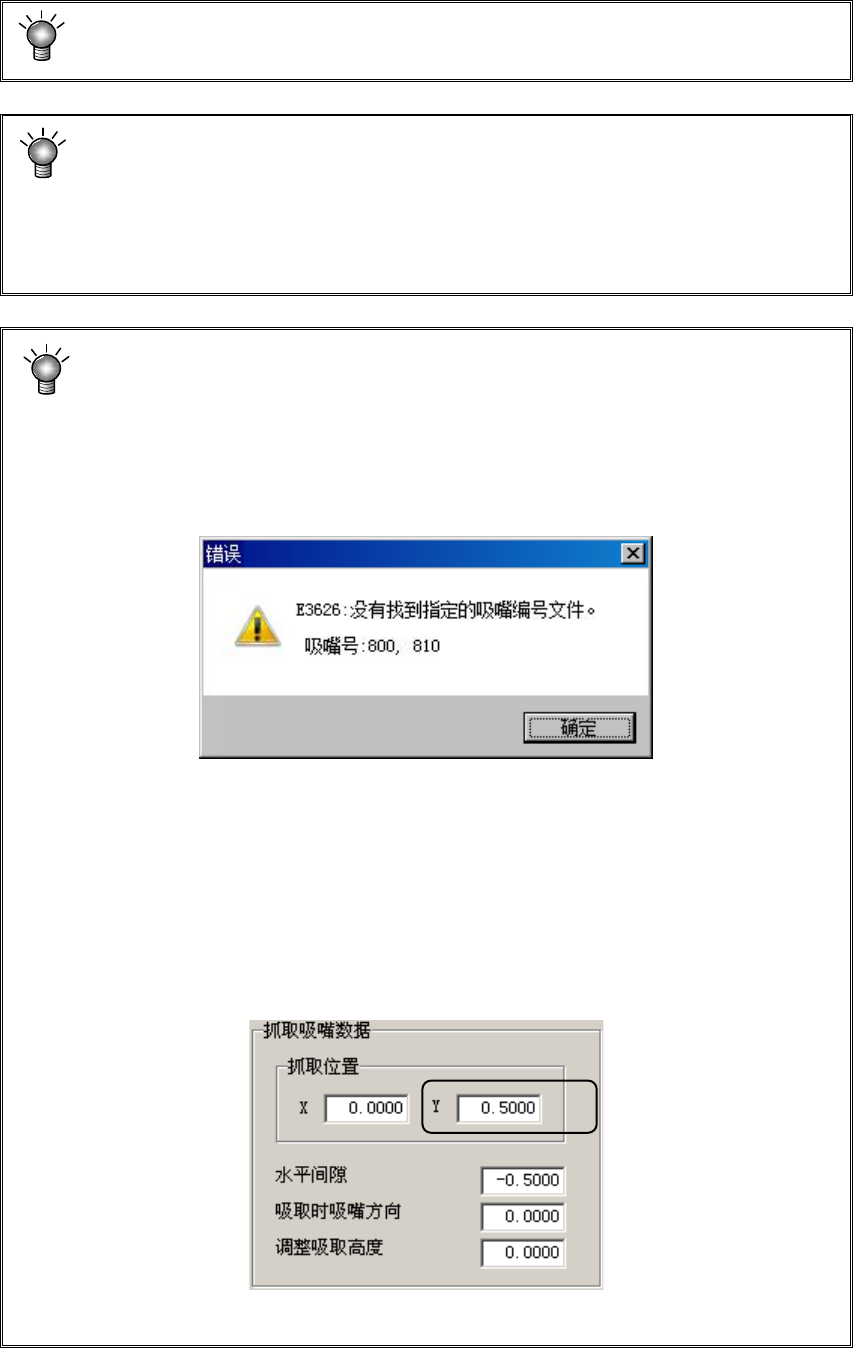 显示上述错误时,请确认错误信息中所写的吸嘴编号之吸嘴文件是否位于指定位置上。即