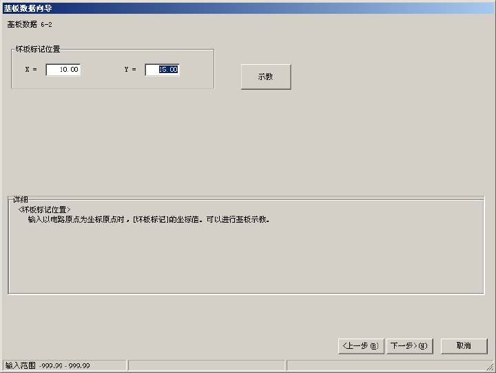 输入坏板标记位置的坐标。详情请参见 4-1-3-2 章(2)矩阵基板。