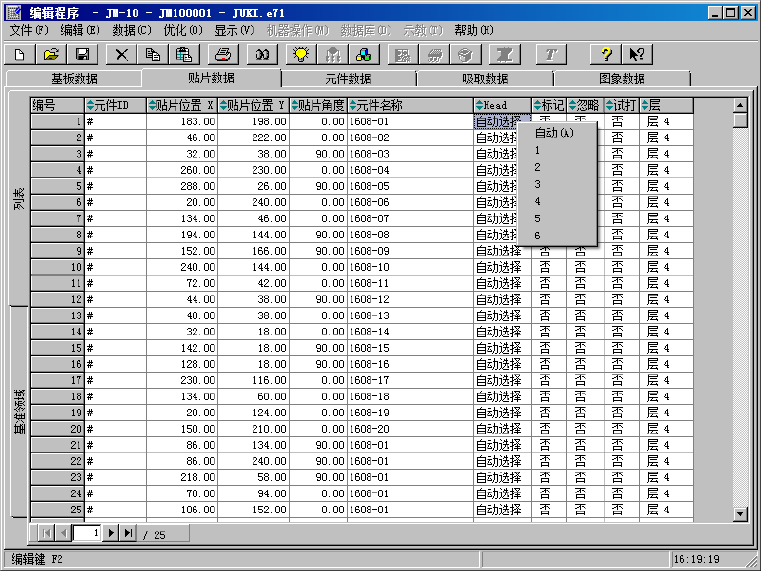 此外,把光标放在贴片数据列表画面的标记栏上,双击后,也可打开只读模式。